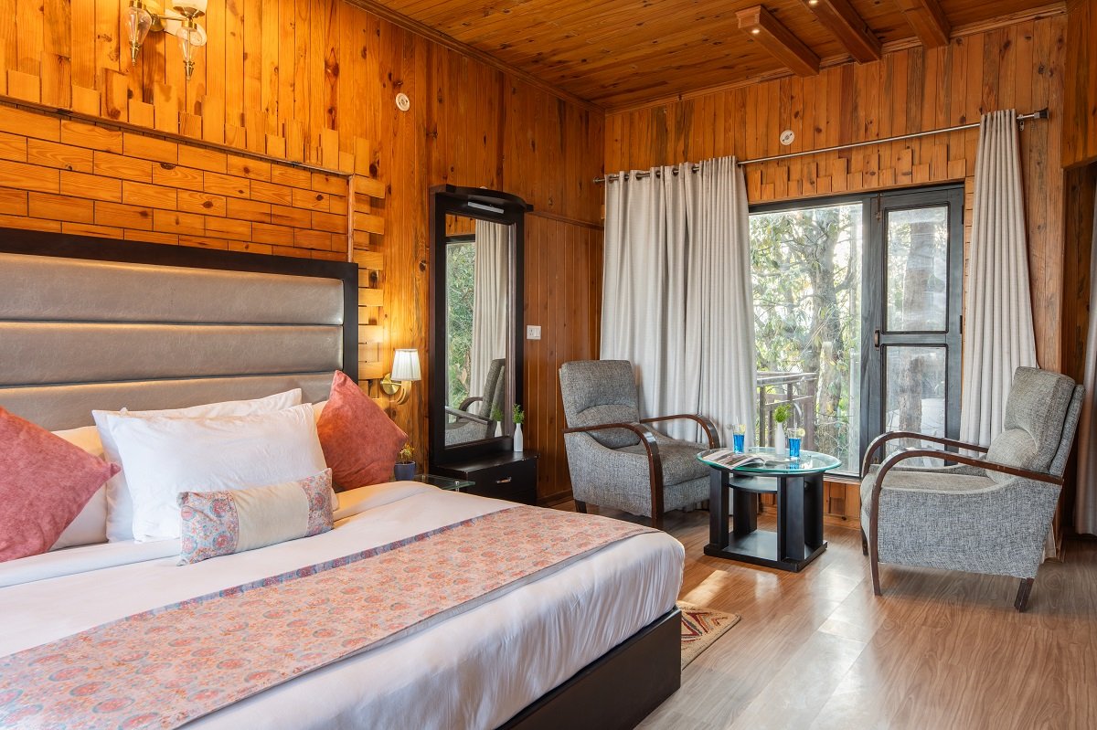 The Jungle Retreat at Ojaswi Himalayan Resort is a tribute to the timeless mountain aesthetic. Built with traditional stone exteriors and warmed by rich wooden interiors, these independent cottage-style dwellings offer a nostalgic nod to British-era hill stations while providing every modern indulgence.